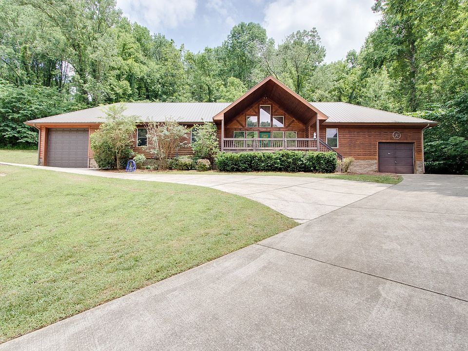The lake place you've been searching for is here! Cozy log cabin with large front porch, fireplace, granite countertops and more - much more! One car garage on right and oversized 2 car garage on left! Bring your boat and all your lake toys! Even better, the circular drive makes ingress & egress easy for your vehicles and lake toys! All tile floors throughout, so drippy swimsuits and/or pets won't hurt the floor. Easy lifestyle living. Easy access to lake. Must see it before it gets away!