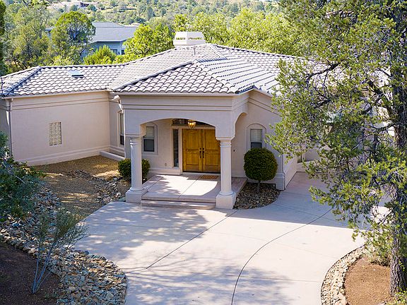 Gorgeous updated home in The Ranch at Prescott. Treed lot with new front landscape. Freshly painted inside and outside. You'll enjoy pleasant weather on the outside patios with built in fire pit. Spacious interior offers lots of storage. Ceiling details offer lighted accent pot shelves. Cozy up by the gas fireplace in the living room and bedroom suite. Primary bedroom with new carpet, fireplace, patio and large closet with skylight. Relax in the jetted tub while enjoying the view. New tiled tub and shower surrounds and granite vanity plus new faucets. Fall in love with the kitchen featuring new GE Monogram stainless double oven, gas range, dishwasher and microwave. New granite counters in laundry room, all baths, dinning buffet and desk. Guest bedrooms upstairs with Jack N Jill bath.