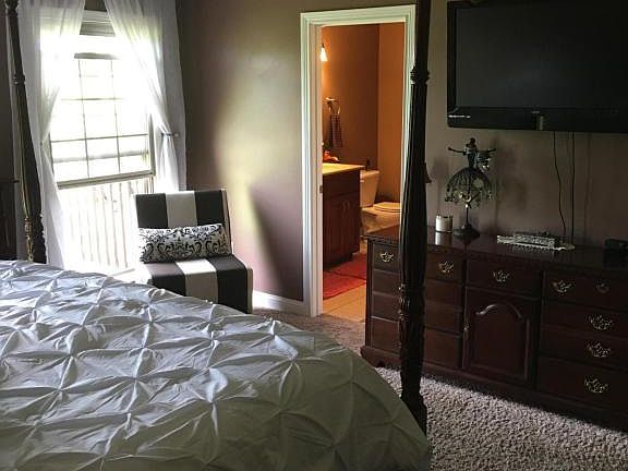 Peaceful living in this 4 bedroom all brick ranch home on 2.2 acres. Need two MASTER BEDROOMS? This home has it. Gorgeous hardwood floors run through the living room and kitchen. Kitchen is large and features beautiful cabinetry and countertops. Large island offers 2 very large drawers and 4 smaller ones for amazing storage capabilities. First floor laundry. The first floor master has double trey ceiling and large walk in closet. The master bath has detailed tiled flooring, a large Jacuzzi tub, double vanity and huge linen closet. Two other bedrooms are on the main floor of this beauty. On a level of it's own you will find another MASTER bedroom that is huge. Plenty large enough for your bedroom and a nice size sitting area for watching television, reading or hobbies