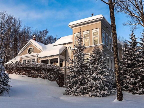 Discover "Base Camp" at Stratton Resort available for the first time since its multi-million dollar renovation! This turnkey estate boasts unmatched construction and exceptional attention to detail while blending transitional style with modern features and amenities. The home has 6 spacious bedrooms including a huge primary bedroom, a bunk room, and 6 beautifully designed bathrooms. Luxurious amenities include a shuttle service that picks you up right at your drive, breathtaking golf course and Stratton views, gourmet kitchen with Wolf & Sub-Zero appliances, bar, wine and beer refrigerators, media room, mini-gym, boot room, hot tub, game room, super high end whole house sound system, security cameras, alarm system, specimen plantings and an Aquasana whole house water filtration system. Multiple gathering spaces offer room for large groups and intimate spaces for more quiet moments. You'll also enjoy a separate 1.7-acre buildable lot with a massive fire pit, volleyball court & horseshoe pit. The heated self-draining garage is equipped with a sink, Sub-Zero fridge, boot drier & roll-out Weber grill. The 4-season heated porch features a fireplace and TV for added enjoyment.  With 2 sets of washer-driers, 3 fireplaces(1 instant on & 2 wood burning), dramatic architectural and property lighting, and a staircase from the Vanderbilt mansion, this home is truly unparalleled. Featuring architecture by Jeffrey Barnes, interior design by Thibault design.