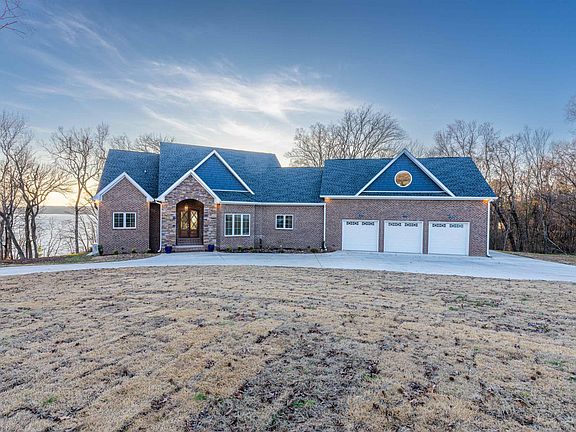 luxurious property with ample room for entertaining family and friends? This newly constructed home is the ultimate retreat, offering spectacular views and a array of impressive features. The main level features a guest powder room, Acacia floors,gourmet kitchen, butlers pantry ,Z-Line stove, cozy living room with gas log fireplace, a luxurious primary bedroom, en-suite bath that showcases a impressive shower and comfy soaking tub along with his/hers walk in closets, all of which offer breathtaking views! The basement is an independent living space with kitchen, living room, two bedrooms with private baths, ample storage and secure safe room. LVP flooring in basement & upper level. The upper level is where you will find the 4th bed & bath with plenty of room for an office or sitting area. Situated on large lot with almost 200 foot on the water. Permit on file with TVA for dock. Situated on 3.49 acre lot. Buyer to verify info.