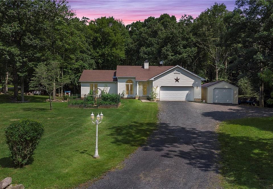 Another move-in ready beauty in the Tall Oaks of Kriss Pines area of Franklin Township, Carbon County! One floor living with a great split floor plan. Master with full bath and access to 2nd floor office on one side and 2 bedrooms and full bath on opposite side of home. This beautiful ranch style home offers a cozy wood burning fireplace, hardwood and laminate floors on the first level, and a partially finished basement with new carpeting. The bonus room in the basement can be customized to suit your needs, whether it's a home office, man cave, theater room, or craft room. Situated on a quiet cul-de-sac, this home features a 22x16 deck off the kitchen, perfect for outdoor entertaining. With a 2-car attached garage and an additional 1-car detached garage, there's plenty of space for storage and hobbies. Don't miss the opportunity to own this remarkable home in a sought-after location. Contact us today to schedule a viewing and make it yours!