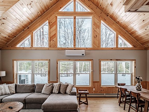 Nestled in Bethel, this home blends rustic charm with modern convenience. Minutes from Sunday River Resort, it offers adventure year-round. Inside, enjoy the beautiful wood interior, cathedral ceilings, & expansive windows capturing the essence of Maine's natural beauty. After a day on the slopes, unwind in the living room in front of the newly installed fireplace with its elegant surround tile.