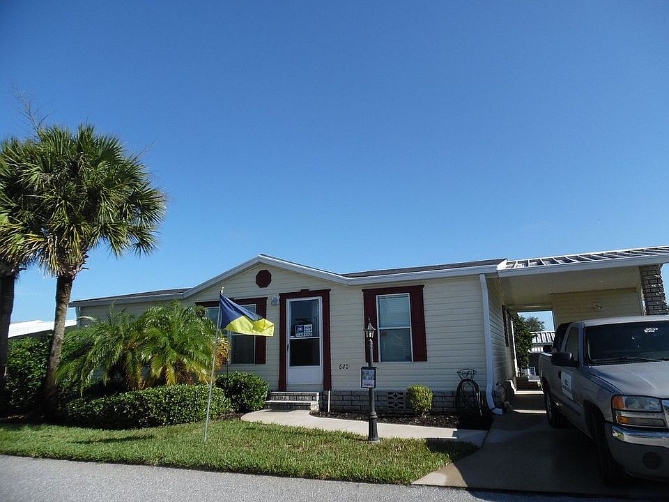 2 bedroom 2 bathroom split floor plan. Galley kitchen with appliances. Rear Lanai. Nice landscaping lot. Single car driveway, carport and shed. Washer and dryer hook-ups. Washer and dryer not included. Central AC and Heating. Home in a 55+ community (Windmill Village) Call 888-801-4497 for more info