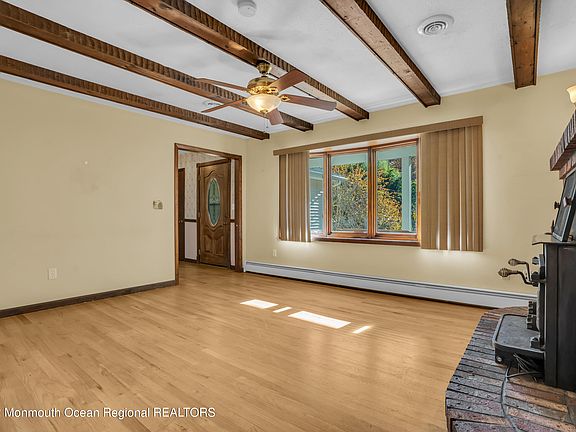 This BEAUTIFUL home situated on over an acre of property is READY & WAITING for you! The covered front porch WELCOMES you into the foyer with hardwood floors that run throughout most of the home. LARGE living room features bay/bow window for GREAT lighting, wood burning stove ACCENTED w/brick wall and beamed ceiling. SPACIOUS kitchen with DINETTE area, ceramic floors, double wall oven, PLENTY of cabinets, tile backsplash, 2 pantries, door to backyard. Dining room is GREAT size and has CROWN & CHAIR molding. HUGE family room offers additional entertaining space. Full bath w/ceramic floor, tub,skylight, and wainscott. MASTER suite is GREAT size WITH 3 closets, full bath w/shower stall w/seat. Additional 3 bedrooms are all generous in size. FINISHED basement is an ADDED bonus to this 2000 sq home. PRIVATE backyard offers a deck directly off the kitchen, inground pool that is separately fenced, storage shed, and backs to woods for the ULTIMATE privacy. Some of the many improvements in aprox the last 10 yrs are roof,siding,furnace,septic,hot water heater,windows. A few additional perks are sprinklers, alarm system and security cameras. This HOME is ONE not to be MISSED, call today for your showing!!
