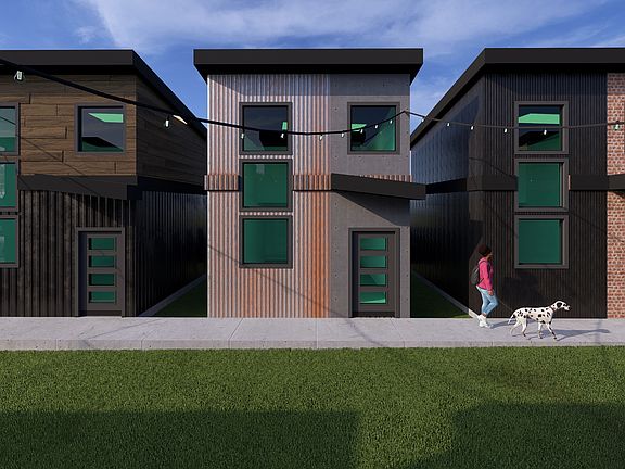 The Forge (5 Units Available) Contemporary Industrial Fusion Exterior: Distinctive Rusted Corten steel siding paired with smooth concrete stucco creates a sophisticated modern look. SW Iron Ore trim with additional Corten steel accents provide architectural depth and visual interest. Interior: Unique Blue Dunes Leathered granite countertops create a stunning focal point against rich Kingston Espresso Shaker cabinets. The beautiful Cheshire Elm flooring brings natural warmth to the space. The kitchen features elegant Bedrosians Cloe Green vertical backsplash tiles. Bathrooms showcase American Olean Carbon Mist Slate glazed tiles in vertical patterns for a spa-like feel. Matte Black Finishes and Fixtures throughout create a clean, sophisticated contrast.