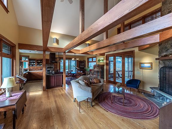 Inspired by its setting at the base of Jump Mountain, this home was designed by the architects who considered the views in every direction. Large picture windows, the open Living/dining/kitchen area, home office & master suite offer broad vistas of the mountains and gently rolling meadows. The gallery staircase flows to the lower level Family Room and Guest Bedroom Suite. The home offers 4 stone fireplaces, a veranda and 3 screened porches. This home sits thoughtfully on 15 acres and is located between the Historic towns of Lexington and Staunton Virginia.
