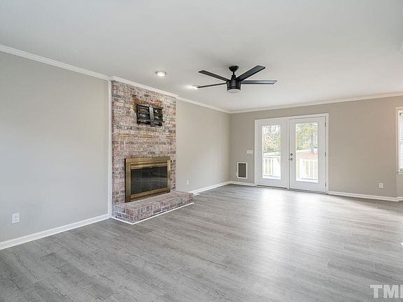 Fantastic 3 BR home on a large, flat lot with walk-down deck. Durable laminate flooring, beautiful lighting, stunning quartz counters, farmhouse sink, SS dishwasher, range hood, tile backsplash, crown molding, smooth-top range, breakfast bar & adjacent laundry room w/cabinets! Updated ceiling fans & fixtures. This wonderful 1-level home has a large driveway/extended parking pad & carport, 4 year old roof! New HVAC in 2021! Quartz counters, Bay window in DR, 2" blinds & a wonderful wood-burning fireplace!