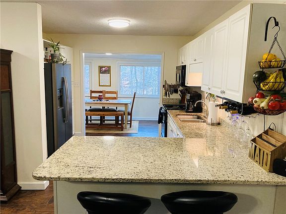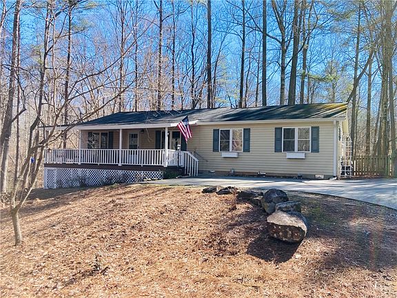 Welcome home! 3 bedroom, 2 bath ranch in a beautiful setting on over an acre of mature trees and plenty of privacy. The rocking chair front porch welcomes you into a spacious interior. Beautiful home with an open and airy floor plan including a Sunroom/dining area and Vaulted Great Room with luxury vinyl plank flooring.. The split bedroom plan gives privacy and the master bedroom offers a walk-in shower double sink vanity, separate walk-in tub,