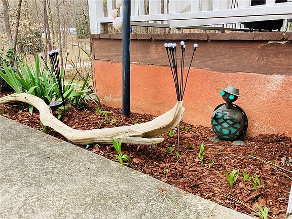 walk-in closet and laundry room. The home has low maintenance exterior with a spacious sunning patio overlooking a fenced back yard all on 1+ wooded acres with creek. There's a detached two car garage and workshop area and the home is equipped with transfer switch for a generator just in case the power goes out. Secluded location just minutes from shopping, dining and more.
