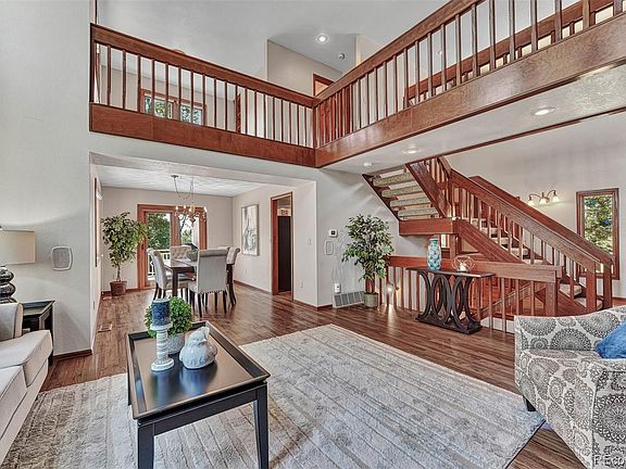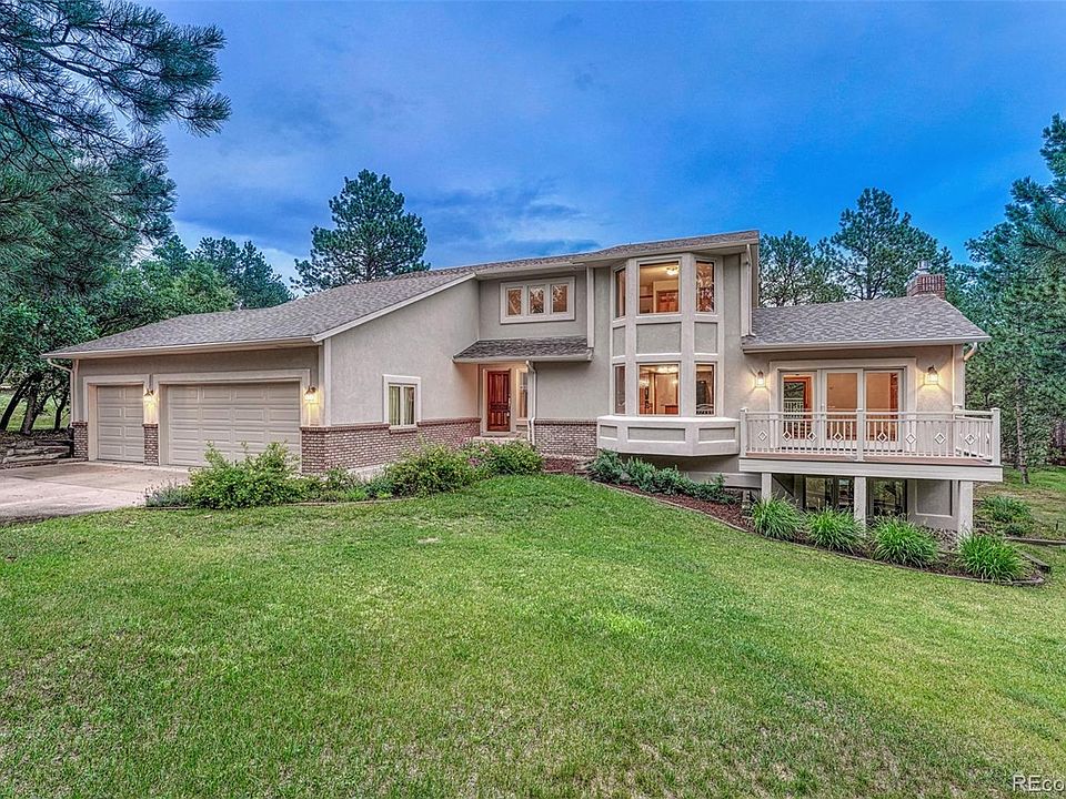 Stunning Woodmoor home on a private, .53 acre corner lot on cul-de-sac. D38 schools. 2022 renovation includes new roof, skylights, gutters & gutter guards, new stucco finish coat, new exterior trim paint, new Pella windows & sliding doors. Central air. Soaring ceilings in Entry & LR. Open tread stairway. Hardwood floors thru much of the ML. Powder Bath & Laundry Rm w/sink & garage access off Entry. Washer/Dryer stay. Formal LR has a wall of 2 story windows & elegant gas-log FP w/marble surround. Formal DR walks out to a 2-level composite deck. Gourmet Island Kitchen offers a built-in pantry w/pullouts, cherry cabinets & granite counters, a planning desk & granite sink. Appl incl a GE Profile convection oven, microwave, Jenn Air 4-burner downdraft range, dishwasher, trash compactor & side by side refrigerator. Bay Nook w/built-in wine rack. Step down Fam Rm has a vaulted, beamed ceiling, gas log FP insert w/brick surround, new cellular shades & sliders out to a front and rear deck. The ML Primary BR has carpet, an attached Spa Bathroom, walk-in closet, & french door to deck w/2019 hot tub w/new cover on order. The Spa Bath boasts skylights, a dual sink vanity, soaking tub & tiled walk-in shower. The UL hosts a loft, 3 BRs w/double closets (1 has a window seat), & 2 Baths a Shower Bathroom & updated Full Bathroom w/cultured marble countertops. The Garden Level Bsmt has electric baseboard heat. It hosts a large Fam Rm w/wood burning stove, & ballet bar w/mirrored wall, a huge unfinished Storage Rm, BR #4, and Full Bath. French doors out to covered patio & extended slate patio. Extras incl central vac, humidifier, 75 gal water heater, solid wood doors, abundant storage. 3 car attached garage. Magnificent, treed lot w/beautiful spruce, ponderosa and gambel oak for privacy. Community has a security patrol, private Woodmoor Country club w/golf course, pool etc! Minutes to shopping, restaurants, amenities, and I-25 access for quick commute to Denver or Col Spgs.