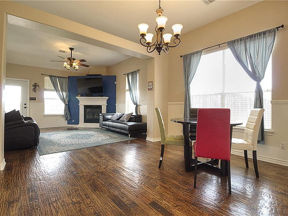 Stunning 3 bedroom 2.5 bathroom home with lots of upgrades on a oversized .26 acre lot. Home features great curb appeal with a gorgeous stone accented entrance and a covered front porch area. Living room equipped with hand scrapped hardwood flooring. Kitchen features ceramic tile, an updated stainless gas stove, lots of counter+storage space, and an attached dining area. Master suite features a vaulted ceiling, large closet, and an attached bathroom with dual vanities. Upstairs bonus room makes a perfect game room or a second living area. Huge backyard boasts a massive covered patio, dog run with custom dog house. No back neighbors for added privacy! Conveniently located close to I35W.