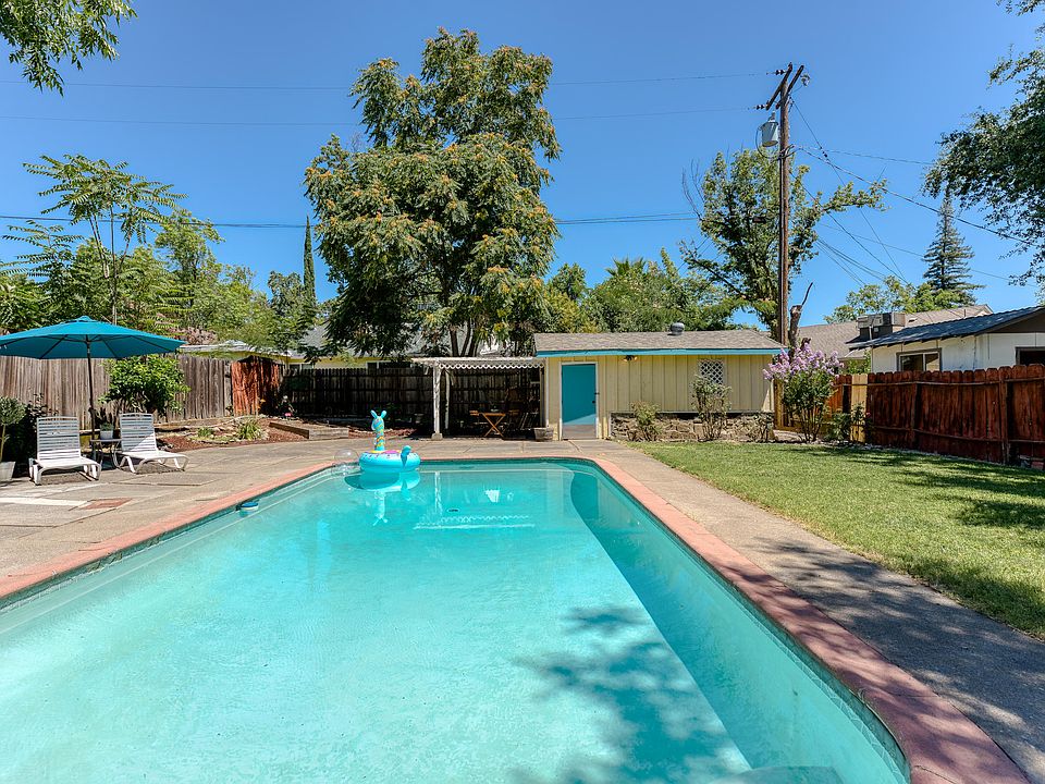 Lucky 2nd CHANCE! Make 2019 your last miserable summer without a pool! Garden Tract w POOL &SHOP! Big 3 bed hm has MASTER SUITE & 2 BONUS RMS! Laminate floors, Granite/Stainless Kitchen, Central Heat/Air & NEW ROOF! Huge Fam Room & Giant Backyard -great for entertaining! Shop in back can be a she-shed/man-cave/hm office. 1950's underground shelter w lights &power could be a wine cellar or fort