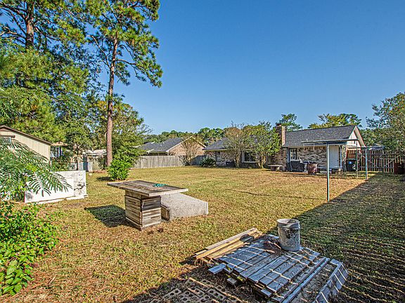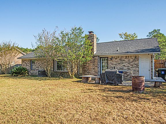 Classic brick 1 story ranch on large corner lot. Covered front porch. 4 car drive way. New Roof. Large great room w/vaulted ceiling & rustic beams. Wood-burning fireplace w/stone surround & mantle. Dining area w/bay window off lovely kitchen smoothly transitions to great room. Great counter space and Island with sink. Appliances convey. Master bedroom has a ceiling fan, walk-in closet, vanity area separate from the full-sized shower and commode. Second & third bedrooms are at the front on the home and share a bathroom with ceramic tile floors. Large linen closet in hallway. Converted garage can be a 4th bedroom, media room or office. Washer/Dryer in laundry room convey. New HVAC. Huge backyard with wood privacy fence, patio, and large sheds. Selling as is at this price incl appliances.