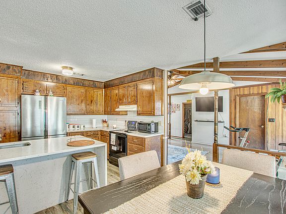 - Beamed Ceilings, Ceiling - Cathedral/Vaulted, High Ceilings, Kitchen Island, Ceiling Fan(s)
