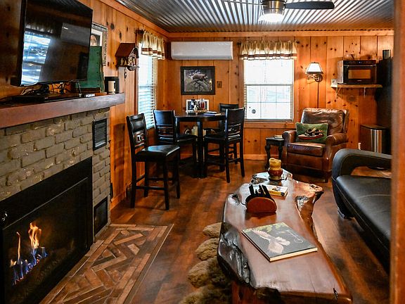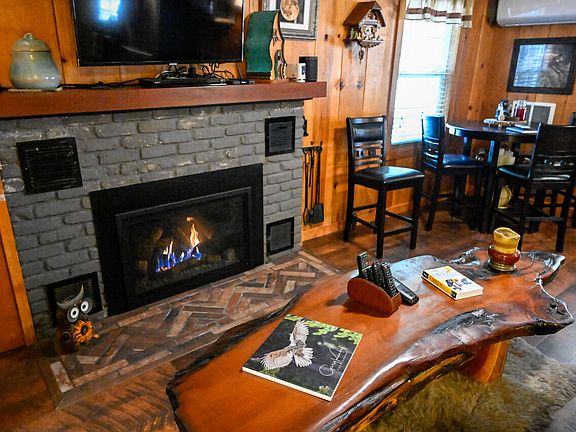 This remodeled cabin has had many changes over the years and is a beautiful mix of rustic cabin and cottage highlights. Lots of natural wood inside and cool Corrugated metal ceilings. A Master suite and the whole length of the house is a big sleeping room with 1 queen bed, 1 full one on each end and a bunk bed in the center, access to deck from a door in this room as well as from kitchen and main bath. Accent wall done in bedroom and living room. The main bath has been remodeled, new floor coverings, new lighting new ceilings, mini split put in for heating and a/c, fireplace was redone too. Newer appliances in kitchen. Electric tape on under house plumbing to protect from winter breaks. Under house reinforcement on foundation. The small shed had electricity and water added for a shop but could be a cute bunk house and there is a 1/2 bath off the deck. There is a toy garage for your mountain toys. Most furnishings will stay. Such a cute getaway place that you can't pass up seeing this one!