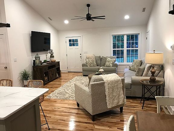 Don't miss out on this new open floor plan house built in 2020 in the heart of Rockwell! This white board and batten house has 3 bedrooms, 2 bathrooms on the main floor, a basement with a large open floor plan that contains a kitchen and bathroom and a two car garage located on 1.79 acres of land. Upgrades include hardwood floors on the main floor of the house, vaulted ceiling in the kitchen, dining room and living room, tile in the bathrooms and laundry room, luxury vinyl plank in the basement. The main floor kitchen has custom cabinets, quartz countertops, tile backsplash with all new stainless steel appliances and a pantry. The master bedroom is very spacious has recess lighting with a barn door leading to the bathroom which has a cabinet style sink and vanity with quartz countertops, new lighting and mirror, and a walk in custom tiled shower. The master bathroom leads to the large walk in closet. The second bathroom on the main floor has quartz countertops, a tub/shower and a linen closet. The basement has gray carpet leading down the stairs to the Luxury vinyl plank flooring in the basement. The basement has a walk in closet area that can be used as storage area. This large open space can be utilized in many different ways. The kitchen has cabinets, a single level bar area and a stainless steel refrigerator. When you walk out the basement door, there is a concrete patio with brick steps. The house has a porch on the front which overlooks the large front yard on Lower Stone Church Road and a back porch with an outdoor closet along with a paved walkway to the brick steps leading to the basement.