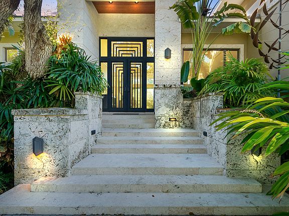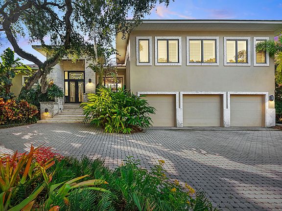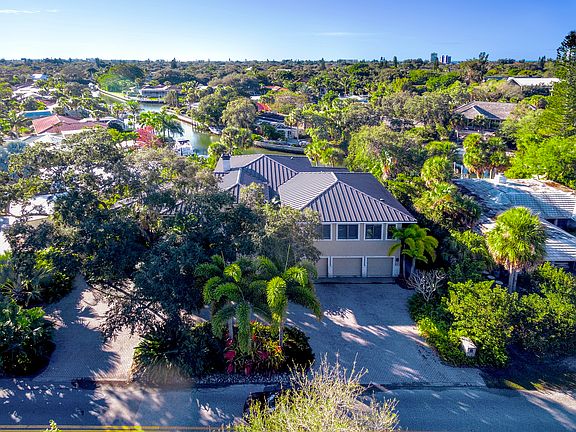 This stunning waterfront home on Siesta Key is a showcase of designer details and custom finishes. The Prairie-Modern inspired design offers lush tropical landscaping, brick-pavered driveway and Philippines shell stone steps as the perfect introduction. Every room showcases the meticulous upgrades, including Anderson casement windows and sliding doors, Brazilian Cherrywood flooring throughout, high ceilings with four-piece crown moldings, decorative sconces and intricate built-ins. The light and open layout is great for entertaining. The grand foyer entry opens to the living/dining room. Perfect for any gathering, the custom-built Crystal gourmet kitchen overlooks the living and dining room. Featuring gas stove top, state-of-the-art stainless steel appliances, quartz countertops and quarter sewn oak slab front cabinetry. The private master suite is located on the first level for added convenience. A game room is located over the three-car garage and is an expansive space for everyone to enjoy. Relish ideal sunny days on the open lanai, offering stone pillars, summer kitchen, heated swimming pool and raised spa with mosaic tiled waterfall feature. A few steps away is the dock and lift with bench seating and shore-power hookups. Siesta Key is an abundant community with its own Village offering shopping and parks and the top beach in the world!