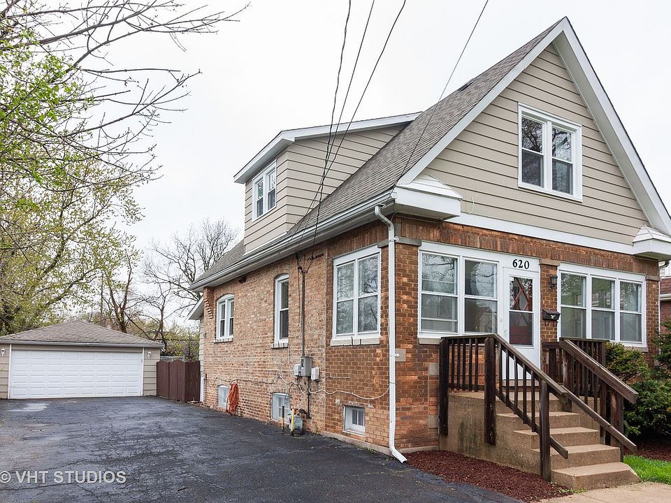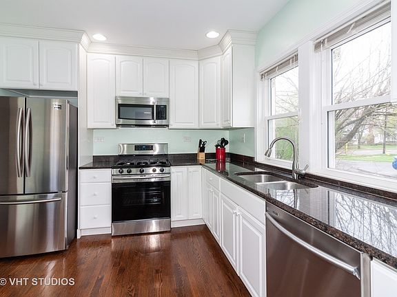 Classic brick bungalow in prime location providing easy access to the commuter train and downtown. Sun drenched front porch. Separate Living & Dining rooms. Newly finished hardwood floors throughout. Freshly painted interior and trim. Bright new Kitchen w/classic white cabinets and granite counter tops includes a large pantry. Two bedrooms, full bath on second level and third all purpose room presently used for additional storage. Private, fenced in back yard with a separate dog run. New windows and doors! This home is move-in ready. Great schools. Must See!