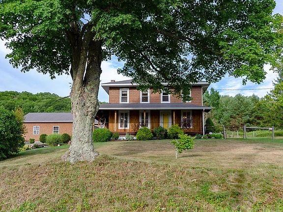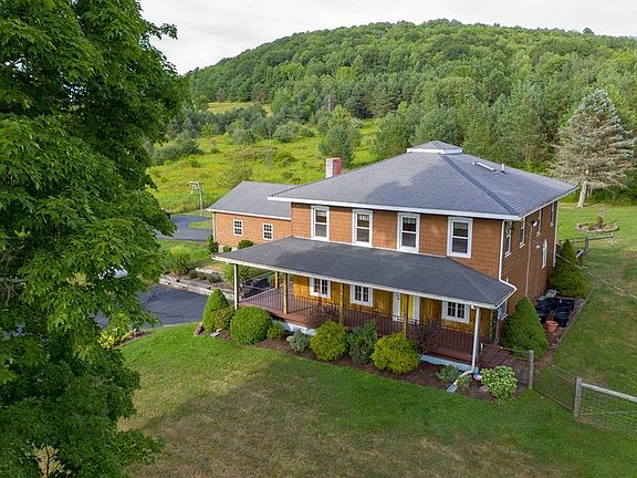 Classic 1880's Farmhouse w/views for miles! Completely renovated & situated on a pristine, nearly 2 acre lot. Electrical, plumbing, mechanicals have all been updated. Boiler is nearly new! Huge Living/Dining room w/pellet or woodstove hookup. Huge, custom Kitchen w/ample storage & Oak cabinetry. Family room boasts cathedral ceilings, plus heated Sun room w/sliders to back yard. Upper level offers 3 good sized bdrms, plus large family room, which could easily become a 4th bdrm. Enjoy incredible views from the wrap around porch & deck. Fenced yard. Additional land may be acquired. Welcome home!!