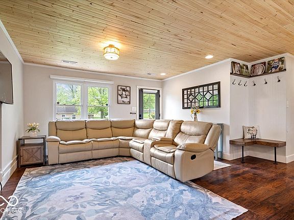 Absolutely gorgeous, updated 3bd, 2ba home in peaceful Brooklyn in Mooresville on a large corner lot! Lovely home features totally reno'd kitchen w/ large center island w/ built-in storage, walk-in pantry & breakfast area (farmhouse table & benches with hidden storage stay!). New laminate flooring & new paint thru out, beautiful wood paneled ceiling & built-in bench/mud area in living room. Full bath has new everything including flooring, vanity, commode, shower stall & built-in shelving. Master bdrm features oversized closet & private half bath that's also been completely reno'd incl custom hidden storage vanity. Very nice sized 2nd bdrm w/ built-in bunk beds that stay! 3rd bdrm perfect size for nursery or private office! Fully fenced rear yard w/ large patio for relaxing, firepit & mini-barn. Spacious corner lot. Oversized gravel drive plus addt'l gravel parking pad from side street. Established garden beds. This home looks straight out of a magazine! Perfect for starting up, slowing down or rental property! NO HOA!! Just 30 mins from downtown Indianapolis. 10 mins to downtown Mooresville. This one won't last so get in quickly! Neighborhood currently having roads repaved. Should be completed by 5/23 at the latest.