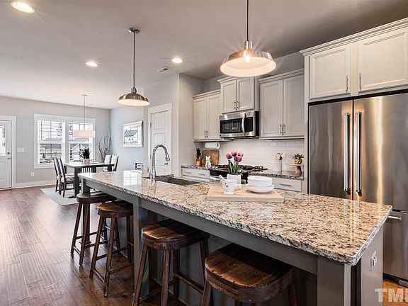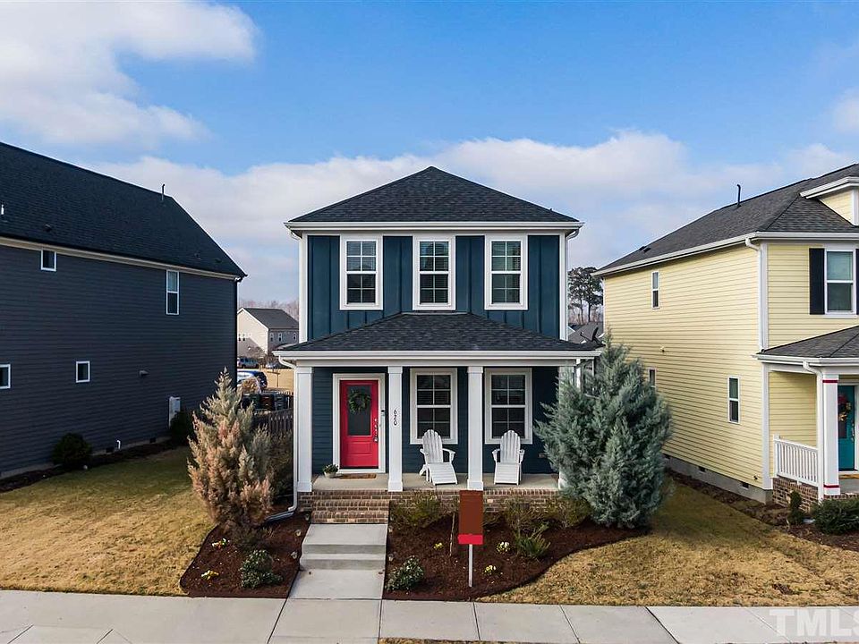 "THE ONE" you have been waiting for in Wendell Falls! Move in ready, Craftsman, 3 bedrm "Scissors" floorpan.1862 sqft & loaded w/ CHARM & STYLE. Open concept that allows natural light to fill the rooms.A kitchen perfect for the home chef w/ large island, & slide in gas range. Master suite w/double closets. Fenced yard.Fridge, W/D included. Spacious lot- Perfect street. Resort style amenities. Sip coffee on your porch, walk to the farmhouse cafe for brunch.. join the community everyone's talking about..