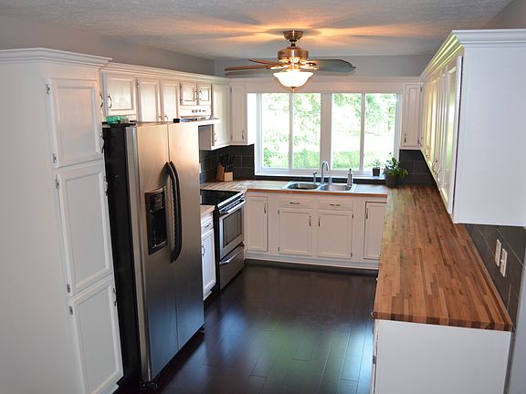 Stunning remodeled ranch style home minutes away from Louisville, Jeffersonville Aquatic Park, and Perrin Family Park! The inviting floor plan allows you to stay connected with guests while entertaining in the spacious living room complimented by beautiful engineered bamboo floors and new fixtures. Take in the natural light from the over sized windows in the updated open kitchen featuring durable butcher block counters, a modern back splash, and clean white cabinets. The kitchen opens to the dining area with room for ample seating for family or entertaining. Four bedrooms on main level. Updated bathroom with stylish shiplap detailing. Impressive basement provides enough space for additional living area with finished flooring and new lighting throughout the space. Basement is ready for your personal touch! Additional fifth bedroom possible with no egress window. Enjoy the wooded scenery of this quiet cul-de-sac from the spacious covered back porch! Home has brand new roof and furnace. Double pane, tilt-in windows and PEX water lines installed in 2016. Setup your showing today!