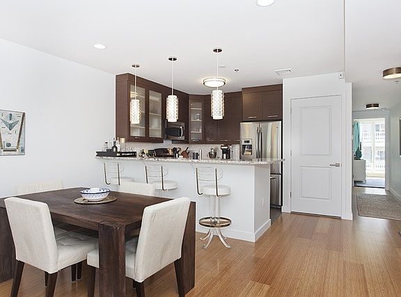 3 bedroom 2 bath unit features a gourmet kitchen with GE profile stainless steel appliances, granite counter tops and breakfast bar. Large open living area includes a brand new fireplace, vertical grain bamboo hardwood floors and leads to a 155 sq foot deck perfect for entertaining! Master bedroom has NYC views and features a custom walk in closet & en suite bath. Central air, W/D in the unit and nearby rental parking complete this beautiful home!