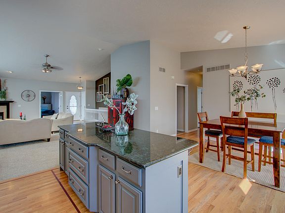 Stunning Remodel, Open-Concept Sunny + Bright west facing Ranch minutes from Old Town Berthoud + super easy access to I-25! New Exterior + Interior paint, Filled w/ character + Move-in Ready! Vaulted ceiling, Lrg windows, A/C, Gas Fireplace, Chef's Open Eat-in Kitchen w/ Granite slab cntps, full tile splash + oversized center island, Stainless appliances, solid oak HW floors w/Cherry inlay, Upgraded cabs with roll-outs in pantry side, Ceilings fans in Bdrms, Beautiful Mstr Suite w/ its own private entrance to the deck, 5 piece master bathroom suite (with jetted tub), walk-in closet, coffered ceiling, Amazing outdoor living - nearly 600 square feet of composition/Trex Deck. Fully fenced- established lush landscaped yard, Garden - raspberries, pear tree and mint - walk path, privacy lattice - BBQ area, optimal Colorado outdoor living. 3 car garage, and active radon mitigation system! Full unfinished basement with plumbing rough-in. Please visit www.620mtmassive.com and schedule your showing today with Catherine!
