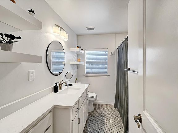 YOUR DREAM starter home or retirement haven awaits! This adorable home was not just remodeled but REBUILT from the frame in 2022! Enjoy modern living with all-new electricity, plumbing, central heat & air, custom cabinets, and stunning quartz countertops. The sleek new kitchen appliances and elegant ceramic tile in the bathroom add a touch of luxury. The plumbing runs through a distribution box, which means you'll never have to turn the water off to the whole house to fix one faucet.
