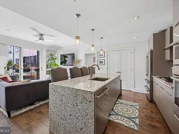 Garage parking, outdoor space, and luxury finishes - this city residence has it all.A rare find in a fantastic neighborhood, this two bedroom condominium in sun splashed with south facing light, and designed to maximize space and comfort.One of only nine boutique residences in Six20, a quiet building on 3rd Street in the heart of Northern Liberties.Enter into a secured mail room for ease of package delivery. Take the elevator up to find your 2 bedroom, 2 full bath residence, offering nearly 900 square feet of living space. Access both the building and the unit with seamless keyless entry, and step into your open concept living and dining room, complete with a charming balcony to sip your morning coffee or unwind in the evening, with floor to ceiling french doors and windows with custom blinds, filling the space with natural light. The chef's kitchen features a modern waterfall island with breakfast bar, in a stunning gray granite, and a full suite of stainless steel appliances including gas cooking and dishwasher. This space flows into the open concept living area, perfect for entertaining. In the living room, a custom fireplace is a show stopping accent piece. Step out the french doors to find a quiet and serene balcony overlooking the courtyard, perfect for sipping your morning coffee, unwinding after work, and growing plants and herbs. Off the hall, find your first full bath. This layout features a bedroom on each side, perfect for a number of configurations for 2 private bedrooms, a work from home suite, or home fitness. The primary bedroom has two custom closets and an ensuite full bath with dual sinks and a frameless glass oversized walk-in shower. The second bedroom features space-saving pocket doors, and an entire wall of custom closets. Beautiful hardwood floors throughout the entire space and in-unit laundry, efficient central heating and cooling with energy efficient thermostat for regulating utility costs, as well as custom blinds throughout to keep the unit cool in the warmer months. Rent includes water, tenants pay electric and gas based on usage. Take the elevator up 2 floors up to find a fully furnished roof deck, perfect for entertaining and enjoying 360 skyline and bridge views - fireworks in every direction when the city is celebrating. Garage features remote control entry and your own dedicated covered end parking spot - fits sedans as well as SUVs with ease. Building has private trash collection service for ultimate convenience. Walk to everything this fantastic neighborhood has to offer - local coffee shop Higher Grounds across the street, hotspot Yanaga Kappo Izakaya on the corner, community center and pool, neighborhood favorites like North Third, Bar 1010, Seiko Sushi, CNT Cafe, Pietramala, and Joy Cafe - all within just a block walk! Nearby Giant Heirloom market, a brand new Sprouts grocery store, just opened Amazon Fresh, Target, and local markets for groceries, and farmers markets in the park. A fantastic residence, in a lovely, walkable neighborhood. The best city living has to offer! Flexible move in date: available for as soon mid October, or anytime in November.