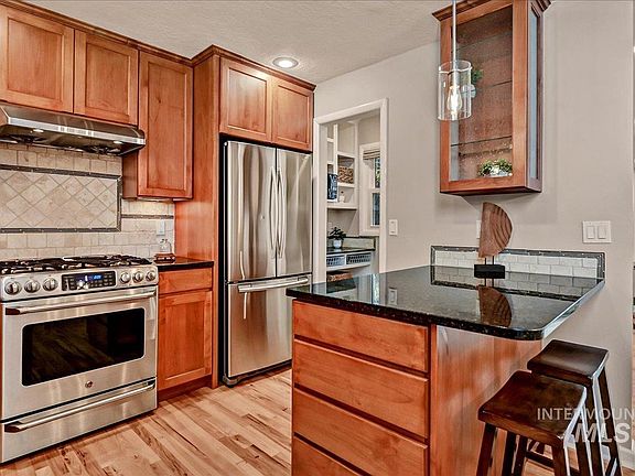 A surprise awaits when you enter the front door of this classic 1950 Clinker brick home...A gorgeous and thoughtful 2012 renovation and redesign by Catherine B. Scott! The renovation included a total new floor plan with two separate bedroom wings; new plumbing and wiring; insulated walls; smart kitchen design with pantry; gas furnace closet with a gas fired on demand hot water heater. All windows were replaced in 2012 and a new roof installed October 2024. The home is situated on a phenomenal lot with direct access to Chief Eagle Eye Reserve and all foothill recreational activities. Rear windows and patio doors all take in the open views of the surrounding foothills and the protected preserve. Beautiful pecan hardwood floors throughout; real wood cabinets with rich pecan stain in kitchen and both baths. New components to all rooms including granite countertops, under mount sink, under cabinet lighting, toilets, flooring, tiles...a complete renovation! Covered back deck frames the golden, fall foothills!