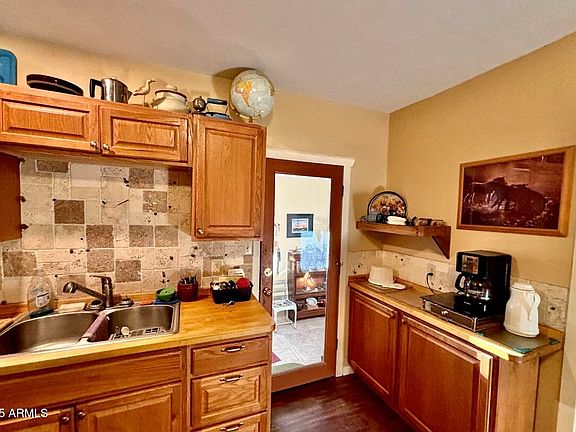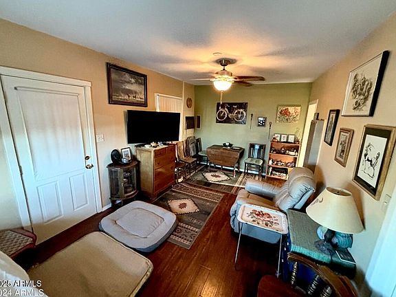 Perched atop a scenic hill, this charming home offers breathtaking panoramic views and spectacular sunsets. Featuring 2 cozy bedrooms and 1 bath, it also includes a versatile Arizona room—perfect for storage, a home office, or a creative retreat. The true gem of this property is the back patio, where the magic unfolds. Relax under the covered patio as you take in the awe-inspiring mountain vistas. With one storage building and two additional storage containers, you'll have ample space for all your needs. This is more than just a home—it's a peaceful escape with nature's beauty as your backdrop!