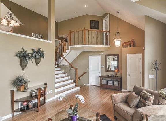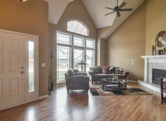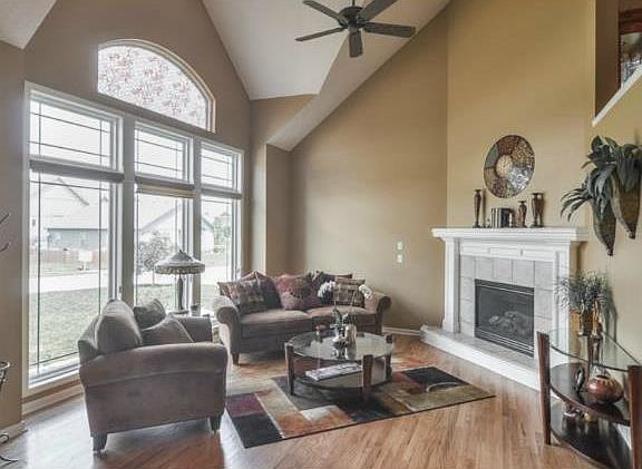 STUNNING Persimmon Pointe beauty! Welcomed by GORGEOUS hardwoods, 2 story vaulted great room w/cozy fireplace! Spacious kitchen w/tons of cabinets opens to deck overlooking fence private back yard that backs to GREENSPACE! Must check out the NEW designer carpet, updated fixtures & plantation shutters! Master bedroom w/vaulted ceilings & master bath w/2 separate vanities! FINISHED WALK-OUT basement w/media room,4th bedrm & private bath. Bonus sub-basement w/extra storage! Award winning Olathe Schools! Welcome home!