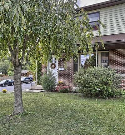 Corner location with fenced in backyard. Cozy 3 bedroom with 1 full bath townhome. Spacious living room with bay window, kitchen area w/all appliances & newer frig plus dining area. Laundry is also found on the main level of this home. The upper level features bedrooms & bath. The fenced in yard is just about perfect w/large shed featuring electric & AC. Parking w/side entry & also off street parking too.Home Warranty & No HOA