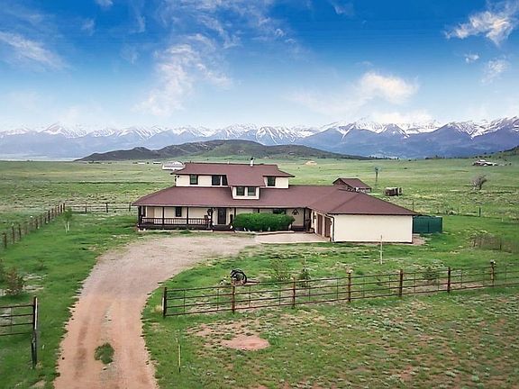 Looking to own a piece of the old west this is the one for you! This spacious 4 bedroom, 3 bath home custom built home on 37.77 acres has views from every room of the majestic Sangre De Cristo. Enjoy morning coffee and evenings under the wrap around covered porch to view the sunrises and sunsets. This home has an open floor design, in addition to a spacious kitchen with double ovens, woodstove and expansive windows that allow the mountains to be a part of every room. true craftsmanship is demonstrated within every detail of this exquisite home. The residence features include hardwood floors, central vacuum, jetted tub with garden window, in-floor radiant heat, manual fire sprinkler system throughout house, and a view from every room. In addition a historic log barn sets on the property near the working windmill that still contains the stanchions used for milking cows. This property has the best of both worlds privacy being located on 37+ acres and yet less than ten miles away from the town of Westcliffe, CO.