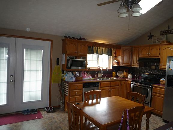 Now for sale is this beautiful ranch style home with 7 adjoining lots, totaling a little over 1 acre! The vinyl sided house was built in 1997. It has a wonderful open floor plan with cathedral ceilings in kitchen & living room, 3 bedrooms, 2 full bathrooms (one has a tub/shower combo and the MBR bath has a garden tub plus a walk in shower) & a laundry room. Complimenting this house is a metal roof, covered front porch, open patio, and 2 garages!