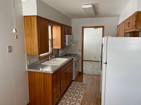 Newly remodeled ranch style home. 3 bedroom, 1-1/2 baths, living room, dining room, dining area in kitchen, full basement with family room (2 finished rooms) and large storage room. Attached garage with automatic garage door opener and fenced yard. New carpet throughout upstairs. New countertops, stove, oven and microwave in kitchen Renter responsible for lawn maintenance and utilities. No pets.