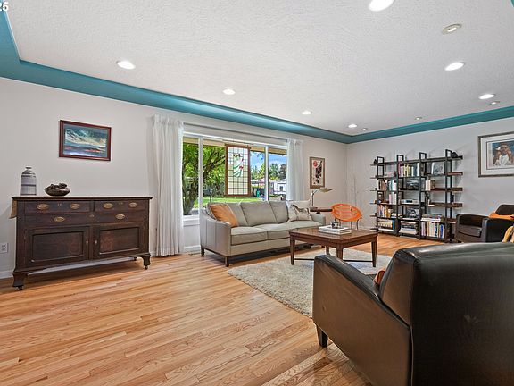 Glendoveer mid-century ranch set in a quiet tree-lined neighborhood. This broad-shouldered 1964-built gem offers sought-after mostly main level living with clean lines, generous room sizes and plenty of updates. Effortlessly blending formal and relaxed spaces with a tiled entry, hardwood floors, living & dining rooms, as well as a more casual family room with vaulted wood ceilings, two wood-burning fireplaces, main floor laundry room, en-suite primary, and gorgeous backyard. Bright and sunny kitchen with fresh white appliances, granite counters, pull-out pantry, skylight, work space, and eating bar. The lower level includes a third bedroom, finished bonus area, and a fabulous office/craft room. Abundant storage throughout, plus a two car garage. Oversized fenced lot, with newer automatic sprinkler system and a large patio will make summer entertaining a breeze. Don’t miss this one! [Home Energy Score = 3. HES Report at https://rpt.greenbuildingregistry.com/hes/OR10206971]