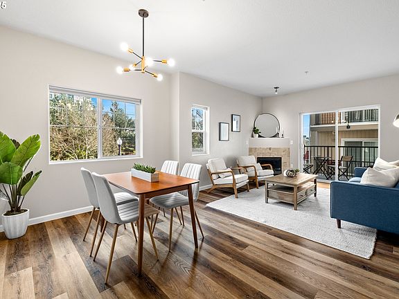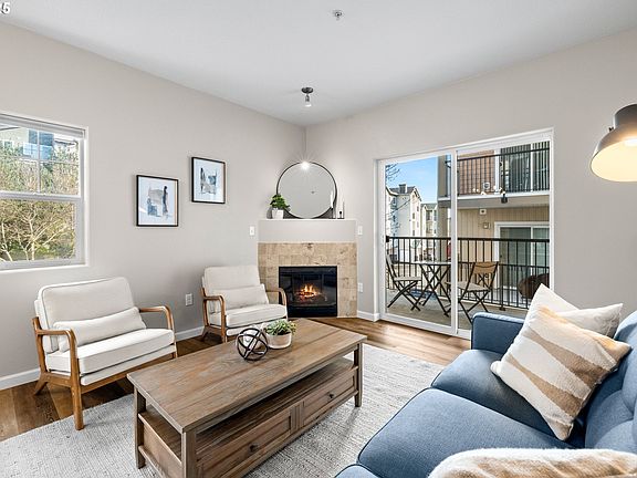 This Cedar mills 2 bed/2 bath condo is a contemporary gem located in the heart of Beaverton. The living space is flooded with natural light and an aesthetic bright interior. The kitchen offers sleek stainless-steel appliances, a granite breakfast bar, and ample space for culinary creations. The primary ensuite features a spacious walk in closet and full bath. Recent 2025 updates include new flooring throughout, freshly painted walls, ceilings, and both kitchen + bathroom cabinetry. Additional amenities include an electric fireplace, air conditioning, full sized washer/dryer, 200 sq ft garage and a dedicated driveway/parking space! This premier neighborhood provides easy access to daily conveniences, major highways, and local shopping/eateries.