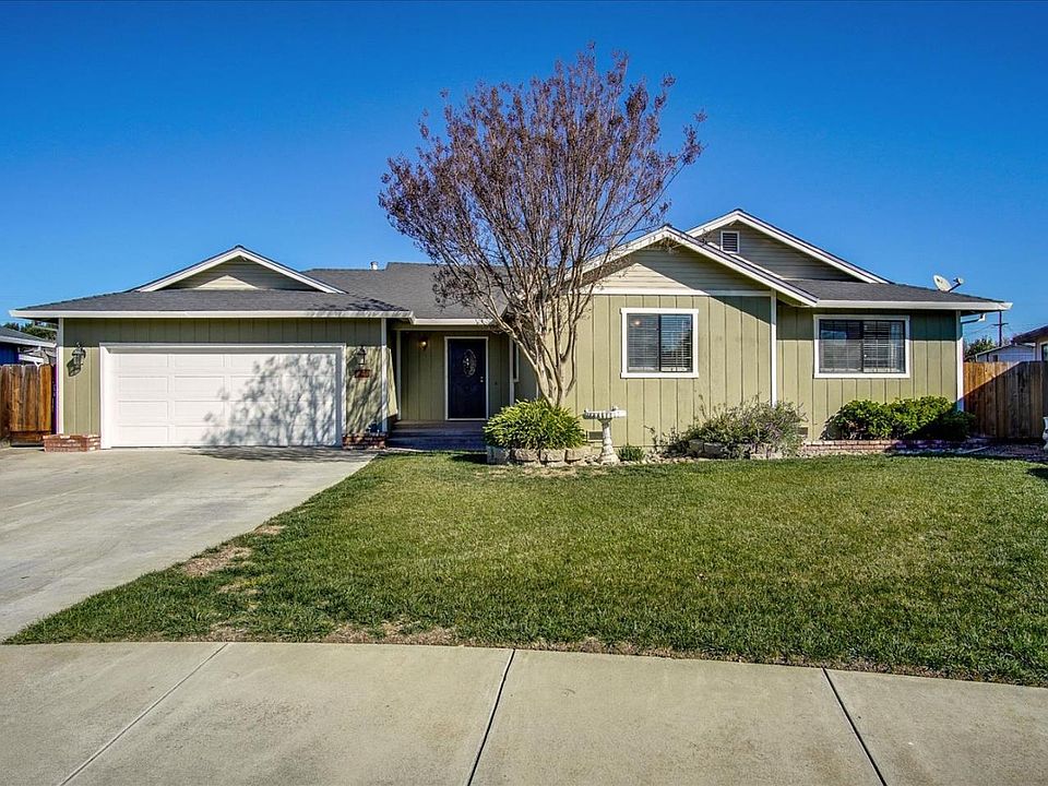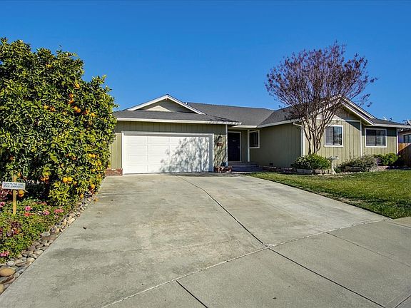 PIES & JAMS! And, fresh squeezed Orange Juice! This remarkable property is filled with 2 cherry trees-1 is a BING, a Moorpark Apricot, Peach, Lemon, Orange and a Grape Vine! From the curbside to the inside you will find this home to be very appealing. Cul de sac living w/ plenty of parking in the driveway enough for 4 cars. The 2 car garage has a large space for your smaller vehicle or a work shop. Past the entry way you walk into a vast open space of your dining, family room and kitchen combination. Pot Belly Stove to cozy up to. The Laundry room has a lot of cabinets with gas or electric for your dryer. The home has a newer roof, Air Conditioner, Water Heater, furnace and garage door opener. All major components covered for easy living! The backyard has a separate area for your dog run or extra storage, a large concrete patio & a 220 outlet to add your Hot Tub! The rest of the yard is large and spacious with lots of sunshine for your future pool or garden. OR enough room for BOTH!