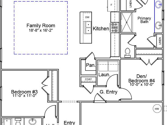 Welcome to the Gwinnett plan! This ranch home includes four bedrooms, two bathrooms, and a covered porch. The kitchen features granite countertops, upgraded white cabinets, and GE stainless steel appliances, including a smooth top range. The great room is open for entertaining and features a large tray ceiling. The primary bedroom includes a tray ceiling and a bathroom with a walk-in shower, raised vanity with dual sinks, and a quartz countertop. Luxury vinyl plank flooring runs throughout the main living areas for an easy lifestyle. Wooded and pond view homesite. Starting construction soon, to be done this Fall.