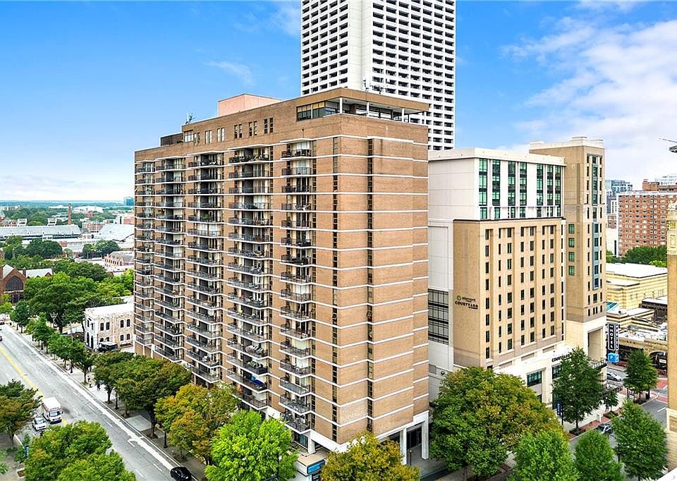 HOA covers Everything Except Cable.   Investors, First time buyers... This is it! Famous Peachtree Street lifestyle with stunning city views and unbeatable convenience right at your doorstep! This light-filled condo boasts an open layout with gorgeous hardwood floors throughout, offering a stylish retreat with all the comforts you crave. Picture yourself savoring morning coffee on the balcony, soaking in the skyline, or taking a leisurely stroll to Piedmont Park, trendy restaurants, and lively bars.    Enjoy 24-hour concierge service, a shimmering pool, a fully equipped fitness center, and secure, gated parking. Located just a block from the iconic Fox Theatre and steps from Starbucks, Georgia Tech, Emory, MARTA, and Norfolk Southern HQ, this location has it all.    Experience true intown living at its finest with this Midtown treasure—a perfect urban escape brimming with endless entertainment and charm! And the best part? Furniture is included! No Rental Restrictions.