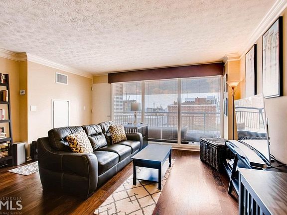 Beautiful 16th floor updated condo overlooking the Fox Theatre. Luxurious 1 bedroom/1 bath condo in sought after Windsor over Peachtree. Kitchen with ample cabinetry, stainless steel appliances, and granite countertops. Wonderful oversized balcony with amazing views all across midtown. Great building with pool, fitness, business center, laundry, & 24 hr concierge. New flooring, new paint, new HVAC. HOA fee includes all utilities. Fiber high speed internet available. TWO parking spaces (tandem) in gated deck and storage unit included. Walk to Marta, restaurants, & more!
