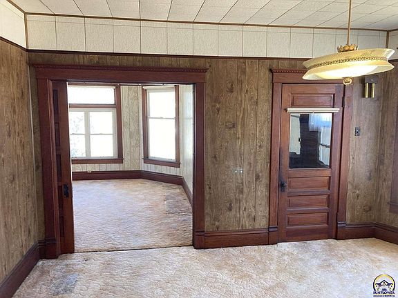 Lots of space with this 4 bedroom, 2 bath home located on a large corner lot in Cottonwood Falls. Built in 1915 this home offers 1,748 sq ft plus an unfinished partial basement. You will appreciate its character with hardwood floors, large trim and pocket doors. Some updates include metal siding and updated windows. This home is filled with potential, waiting to be unlocked, come and make some updates and turn this into your dream home!