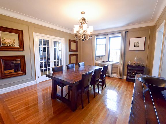Sunlit corner unit in charming pre-war building. Large rooms with high ceilings, meticulously cared for. New stainless steel refrigerator and 36" stove. New French Doors separate dining and living rooms. Hardwood floors throughout. Full sized dining room, custom built pantry, woodsy views from the fourth floor. Convenient to all shopping, schools and Metro North. Move-in condition.