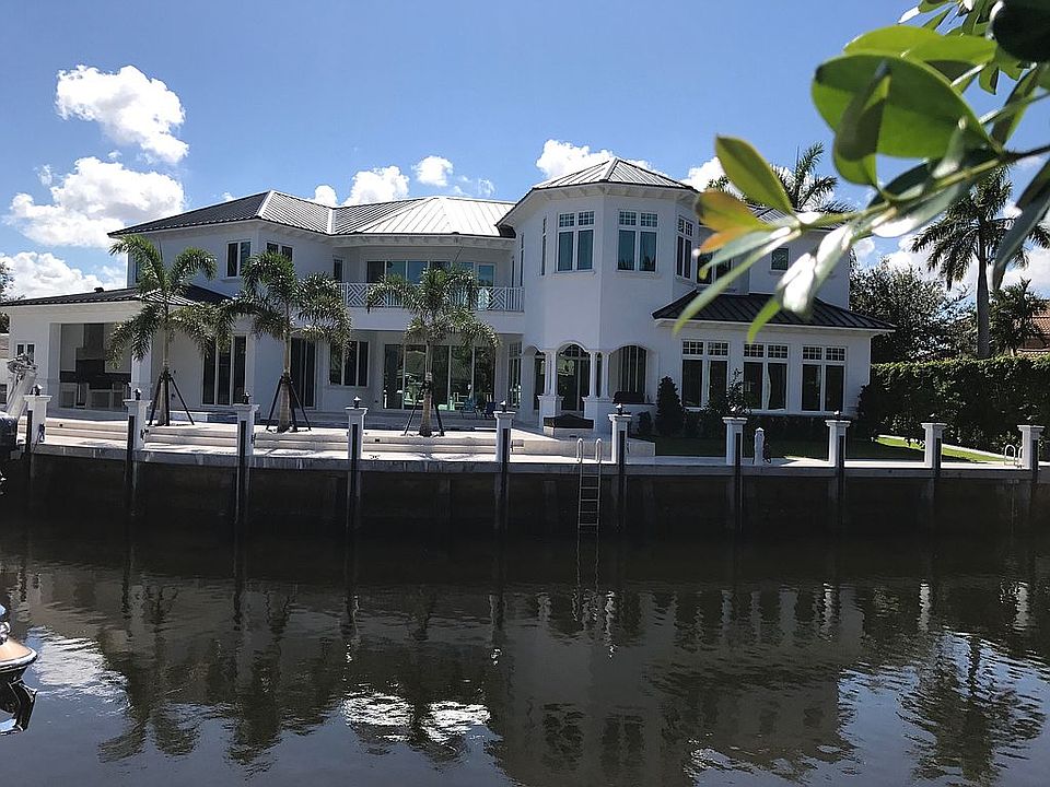 Recently renovated waterfront home with new roof, new kitchen, new bathrooms, new flooring throughout. This home is strategically positioned on an expansive, beautiful waterfront lot on a quiet cul-de-sac street in one of Boca Raton's prime eastern neighborhoods just blocks from Mizner Park and a bike ride to the ocean's beaches. Wide open floorplan with all major rooms facing the pool, verdant yard and water. Large covered loggia facing pool, yard and the water beyond. Seawall is approximately 180 feet providing protected dockage for multiple boats near the Boca Inlet.