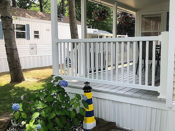 Open May 1st to October 30th. Fee includes-water,sewer, cable (basic), trash, clubhouse, laundry room and pool/playground. Mobile Home is located on shaded end lot. 2 Bedroom (1 master bedroom and 1 bunk room – 2 twin beds). Hardwood floors, roof and heating / AC system within 10 years, new blinds 2024 and deck freshly painted 2024. Rebecca Kidnay Owner 508-847-3884