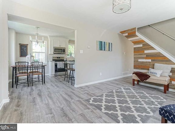 Welcome Home! This spacious, two story colonial offers 4 bedrooms and 2 full bathrooms of renovated beauty! Pull onto the quiet, one-way street and you're greeted by the charming, sunny exterior. Entering through the front door, you are greeted by the maintenance free, luxury vinyl plank flooring in neutral grey tone which is accented by neutral paint which both flow throughout the entire main level; emphasizing the open concept floor plan. Living room has a convenient coat closet by the door in addition to an additional closet beneath the stairs. The gorgeous reclaimed wood accent wall on the stairs is sure to catch your eye! Just off the living room is a stunning kitchen and dining area. The dining area is light and bright thanks to windows on the front and side of the home. This is the kitchen you've been dreaming of. White shaker style cabinetry lines both sides of the kitchen and wraps around into a peninsula offering additional storage, counter space and casual seating! Gorgeous grey granite counters compliment both the cabinetry, white subway tile back-splash and stainless steel appliances. At the end of the kitchen, the laundry/utility room is tucked behind a door and adds additional storage space as well. Through to the back of the home, the massive family room spans the full width and overlooks the park-like back yard. Shadow boxes add just enough detail to this bright, spacious room. This is sure to be a great gathering space for both family and friends especially during those warmer months when the party can flow to the back deck just through the sliding glass doors. The deck leads down to a massive patio space and overlooks a partially fenced yard with a deep lot that just seems to keep going! Back inside, just beyond the family room, a full bath is conveniently tucked away. Upstairs, neutral paint and carpet flow throughout the four spacious bedrooms. All bedrooms have large closets and plenty of natural light. The full bathroom is easily accessible from all bedrooms and offers beautiful updates throughout, just as the lower level bath does. No stone left unturned here! With newer roof & windows, brand new HVAC, new finishings throughout every room, there is nothing left to do but make an offer and await settlement. Easy access to Philly via Betsy Ross Bridge and major roads such as 73, 90, 130. Don't delay!