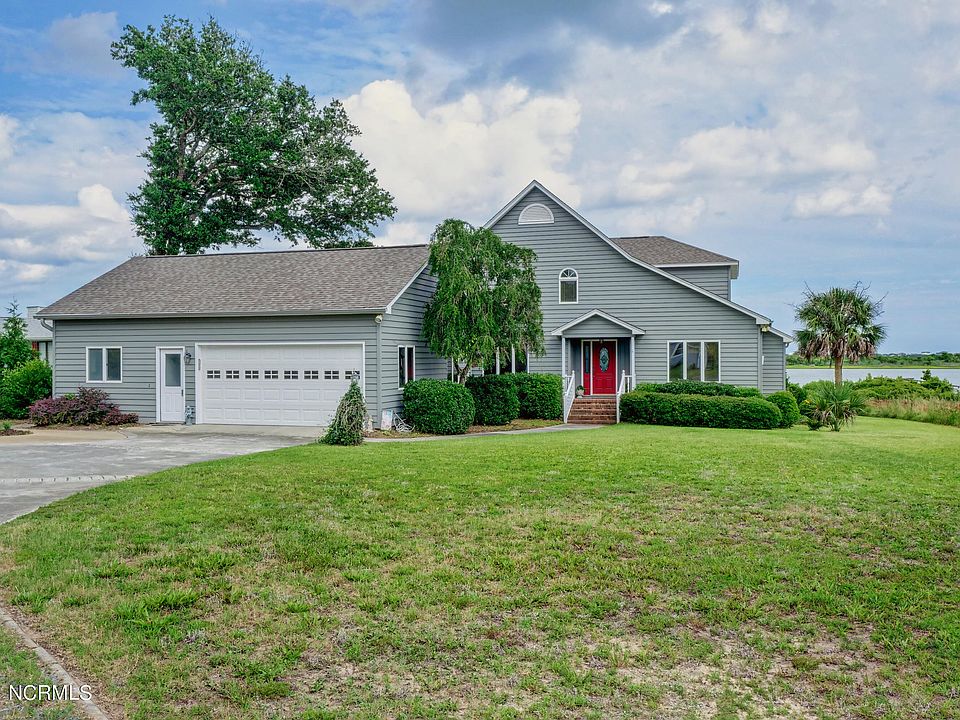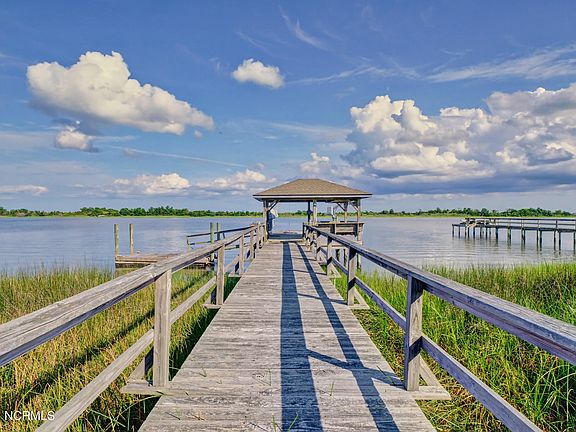 Magnificent Intracoastal Waterfront property with private pier, gazebo, floating dock and davit lift! Arguably the best kept secret in Hampstead, Red Fox Trail boasts estate sized lots and high ground offering spectacular panoramic views of the ICW and sound. Tucked away on a lovely landscaped acre, this 1-owner home offers a traditional flow with modern elements: a 2-story great room with soaring ceilings, palladium windows, balcony overlook and gas logs fireplace with raised hearth & granite surround; an expansive downstairs waterfront master suite with private bath and adjoining home office; a large gathering-place kitchen ideally suited to entertaining on any scale. It is open to a sunny breakfast room with window seat which flows to the waterfront morning room, and adjacent sunroom. Upstairs are 2 additional bedrooms, loft, large bath, and a ton of floored storage. Sought-after traditional elements include a formal dining room huge mudroom/laundry with full bath, utility sink, pantry, and pedestrian door to the side yard and breezy side deck shaded by mature trees. Other interior features include a wet bar in the kitchen, cherry cabinetry with ceramic backsplash and many custom built-ins. But wait! There's more! An oversized 2-car attached garage, 2-car detached garage/workshop, a large ''She Shed'' plus plenty of room for gardens. All the roofs are new, the main HVAC is geothermal & there is a barely used heat pump for upstairs. Opportunity is knocking for the ultimate coastal Carolina lifestyle with your own water access and property with room to grow! Gorgeous sunrises & sunsets, a steady parade of boats, bottlenose dolphins, a variety of waterfowl and more are your daily delights when you make this your new forever home.